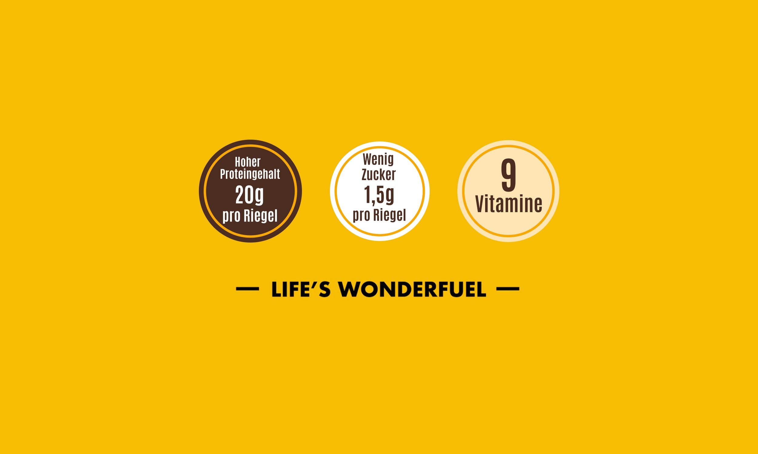 HOHER PROTEINGEHALT • WENIG ZUCKER • 9 VITAMINE • GROßARTIGER GESCHMACK